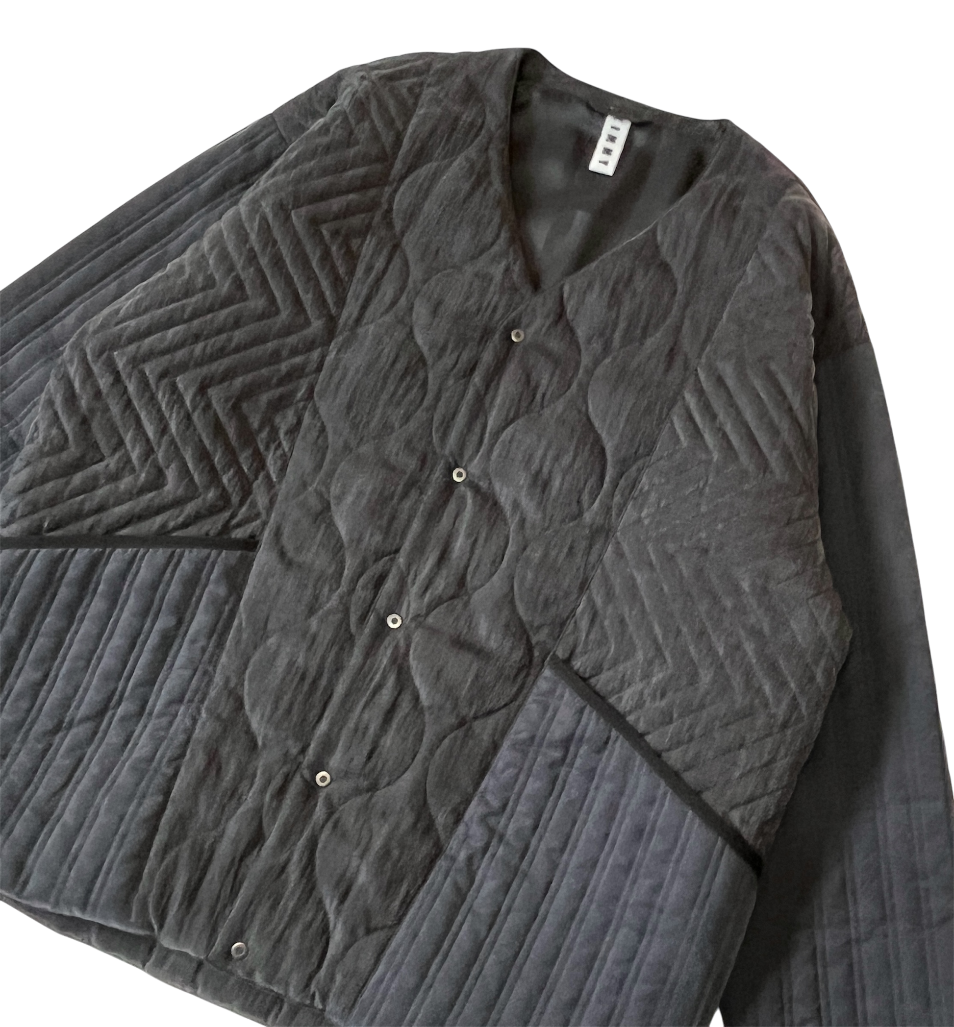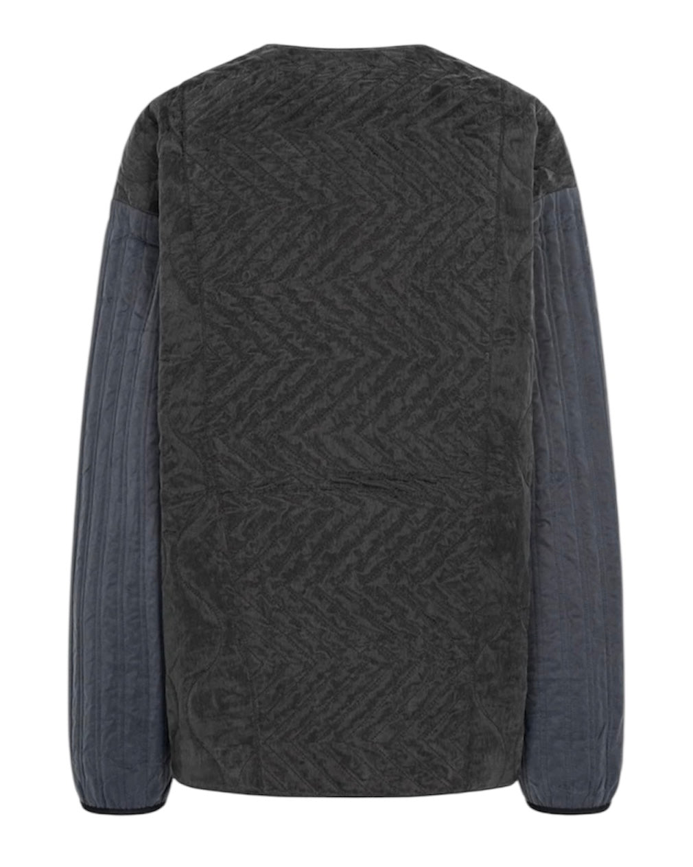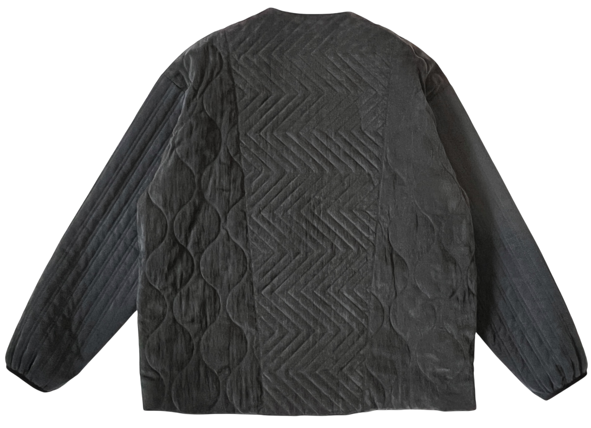 Lining jacket made with three different types of subtle color coordinated cupra quilting.