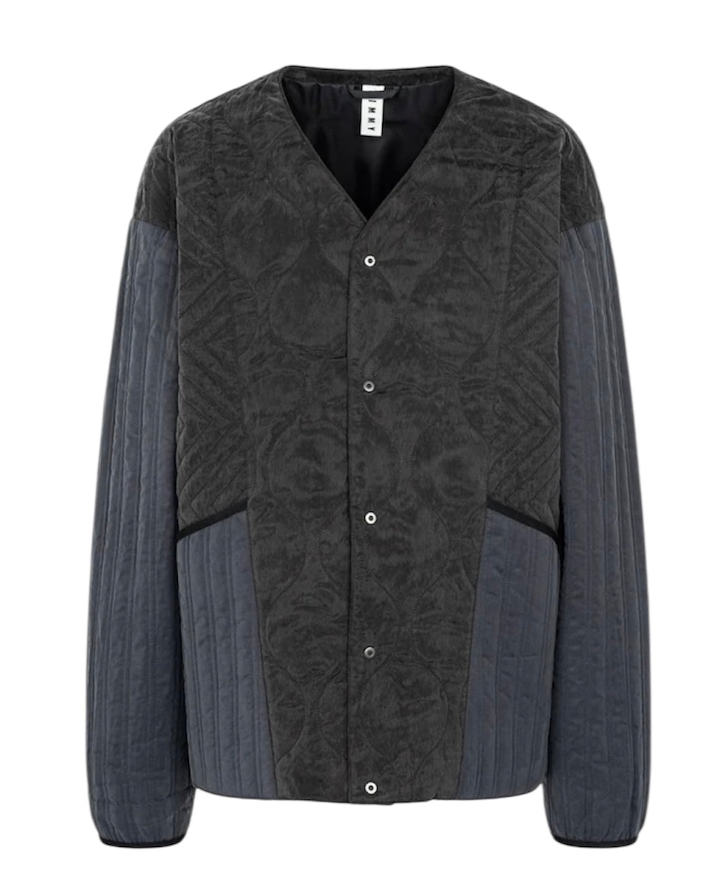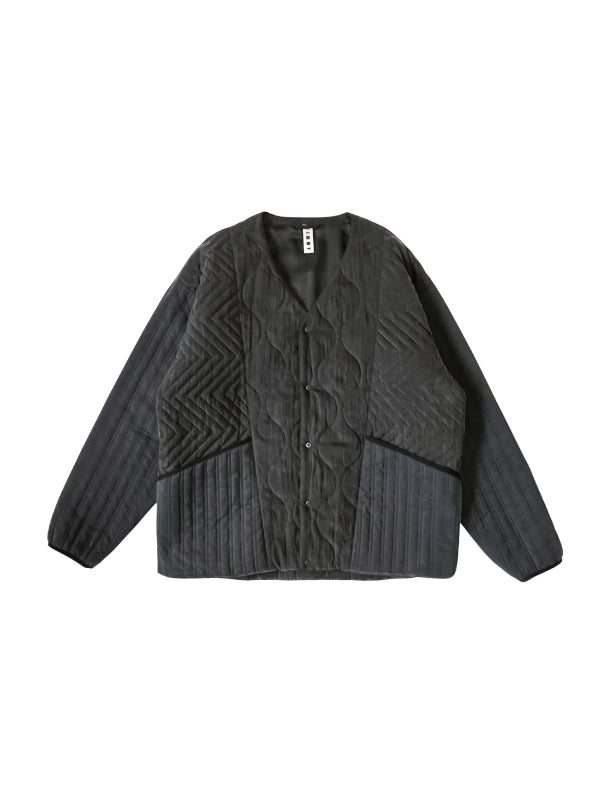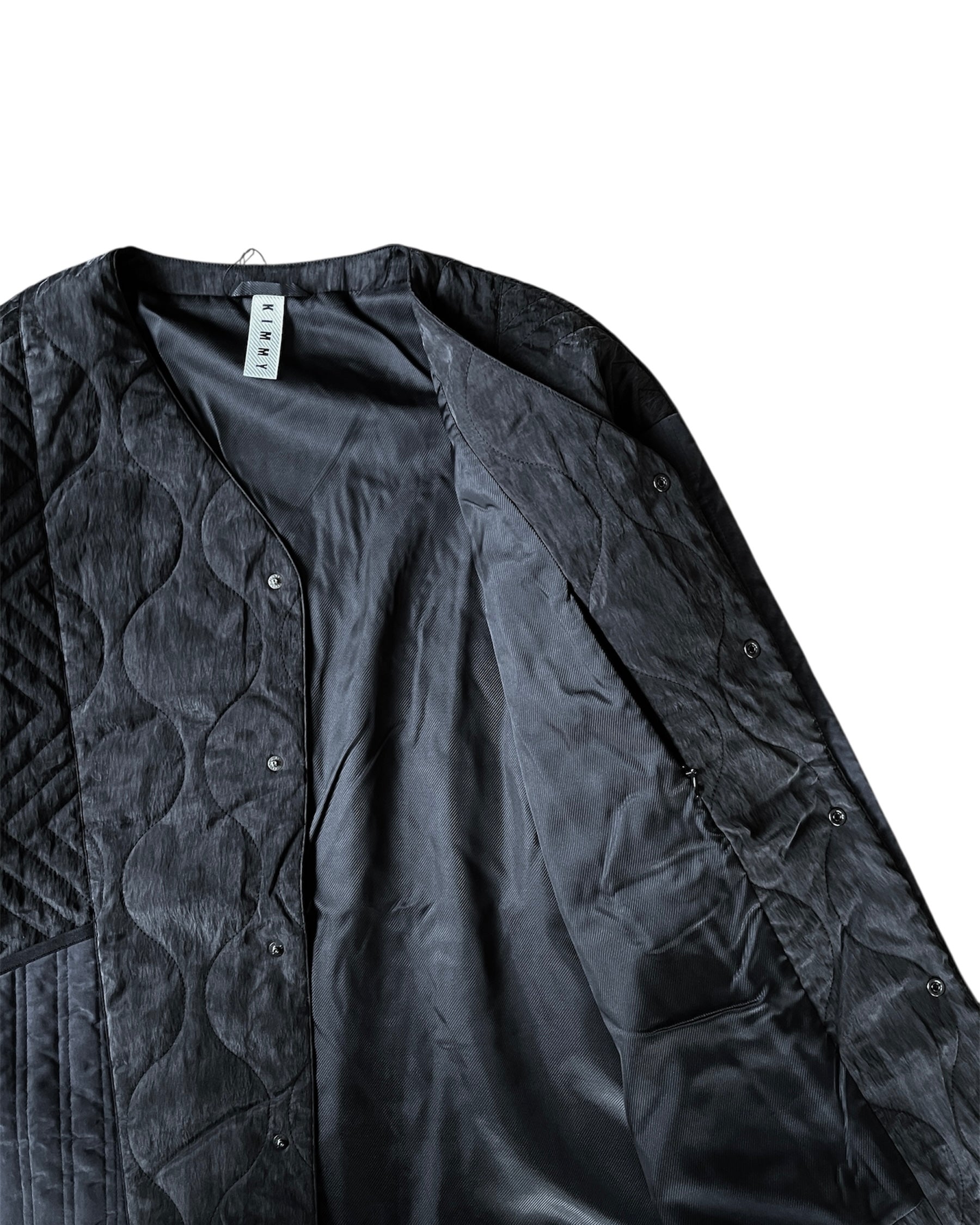 Lining jacket made with three different types of subtle color coordinated cupra quilting.