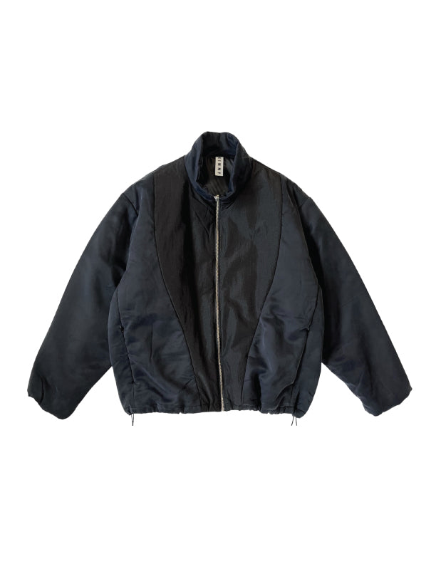 Padded stand jacket made from very light and soft vintage cupra material.