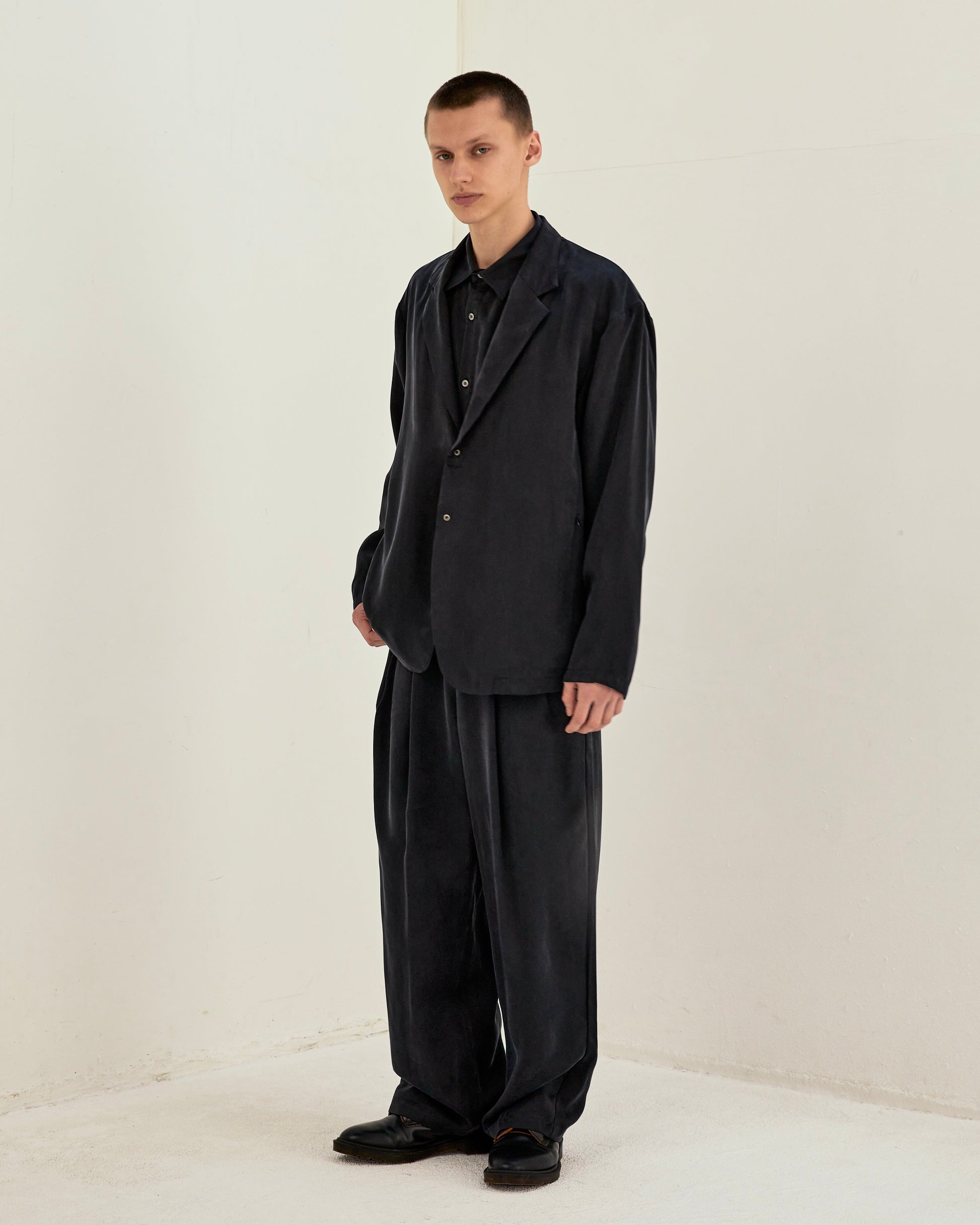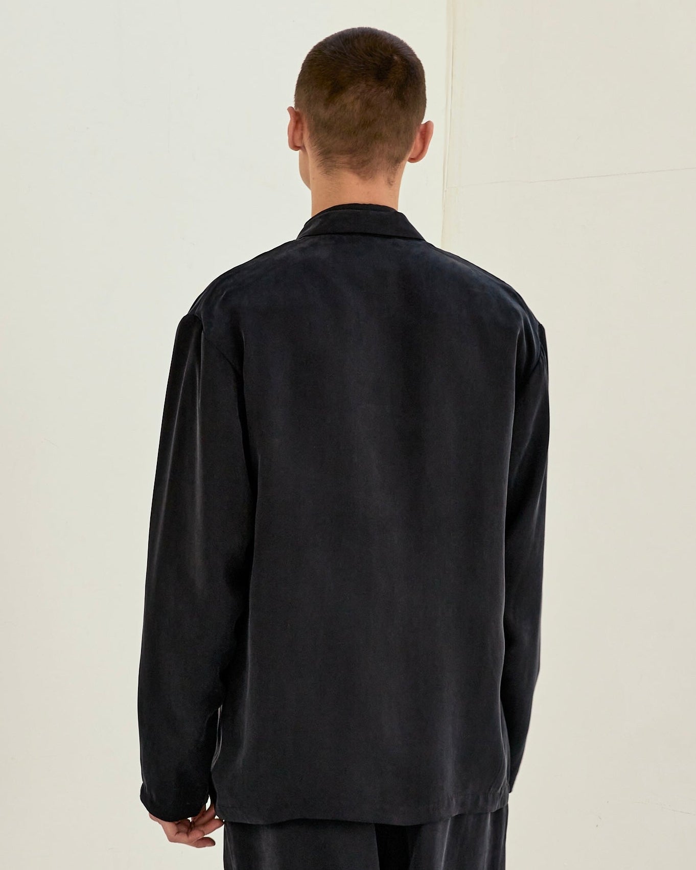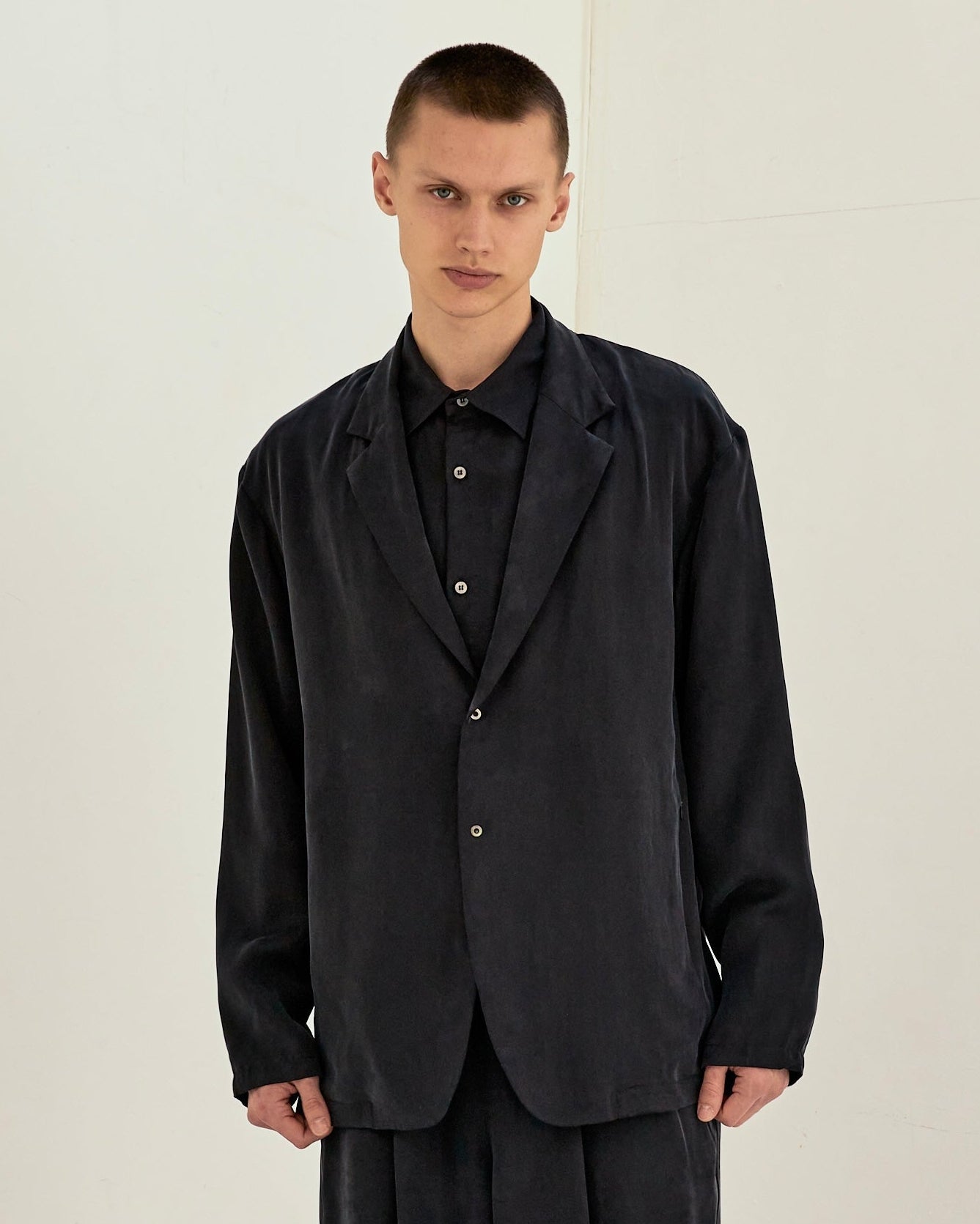 Single-breasted jacket made from vintage-processed cupra fabric. Lightweight and draping for an elegant style. Cool to the touch and machine washable.