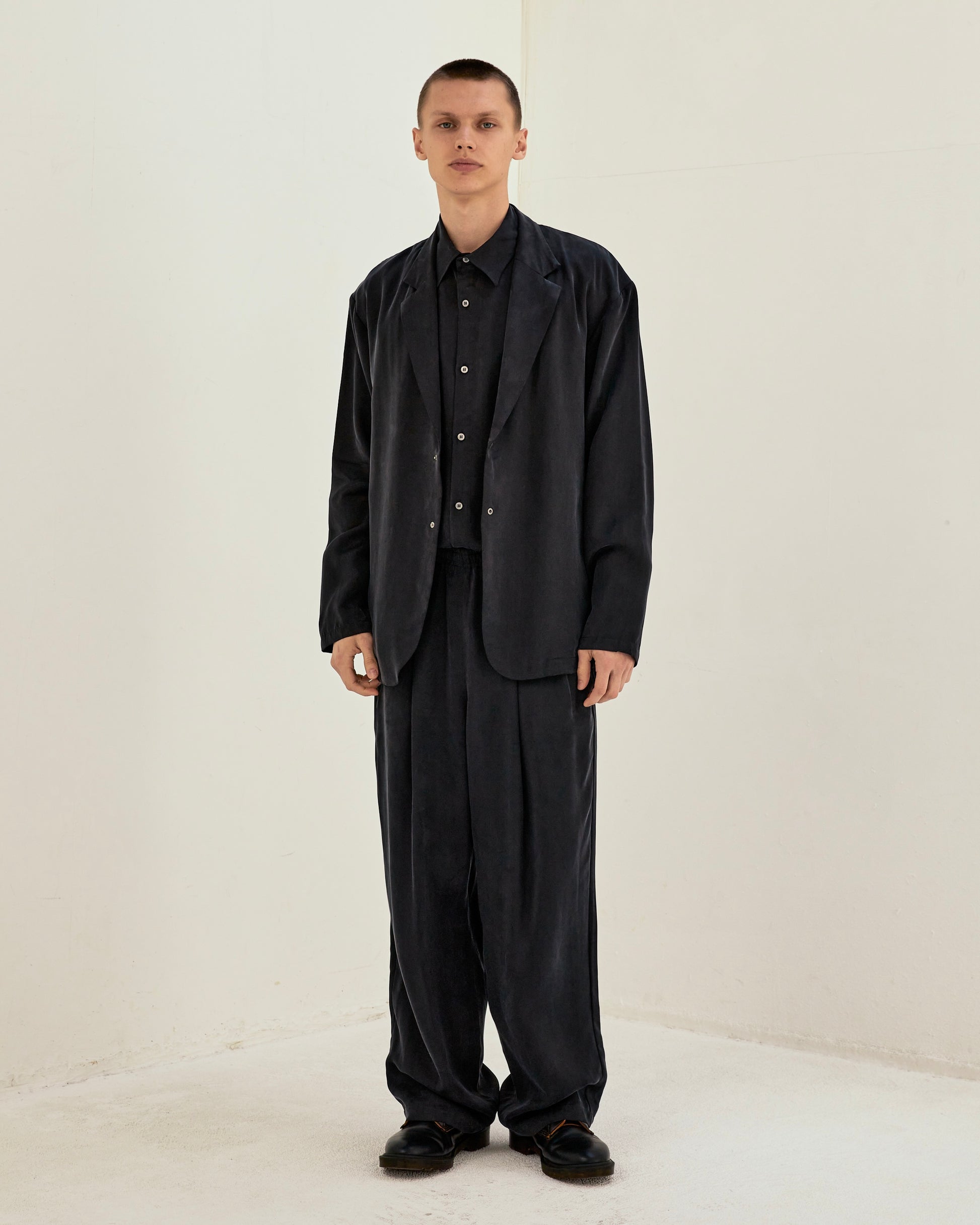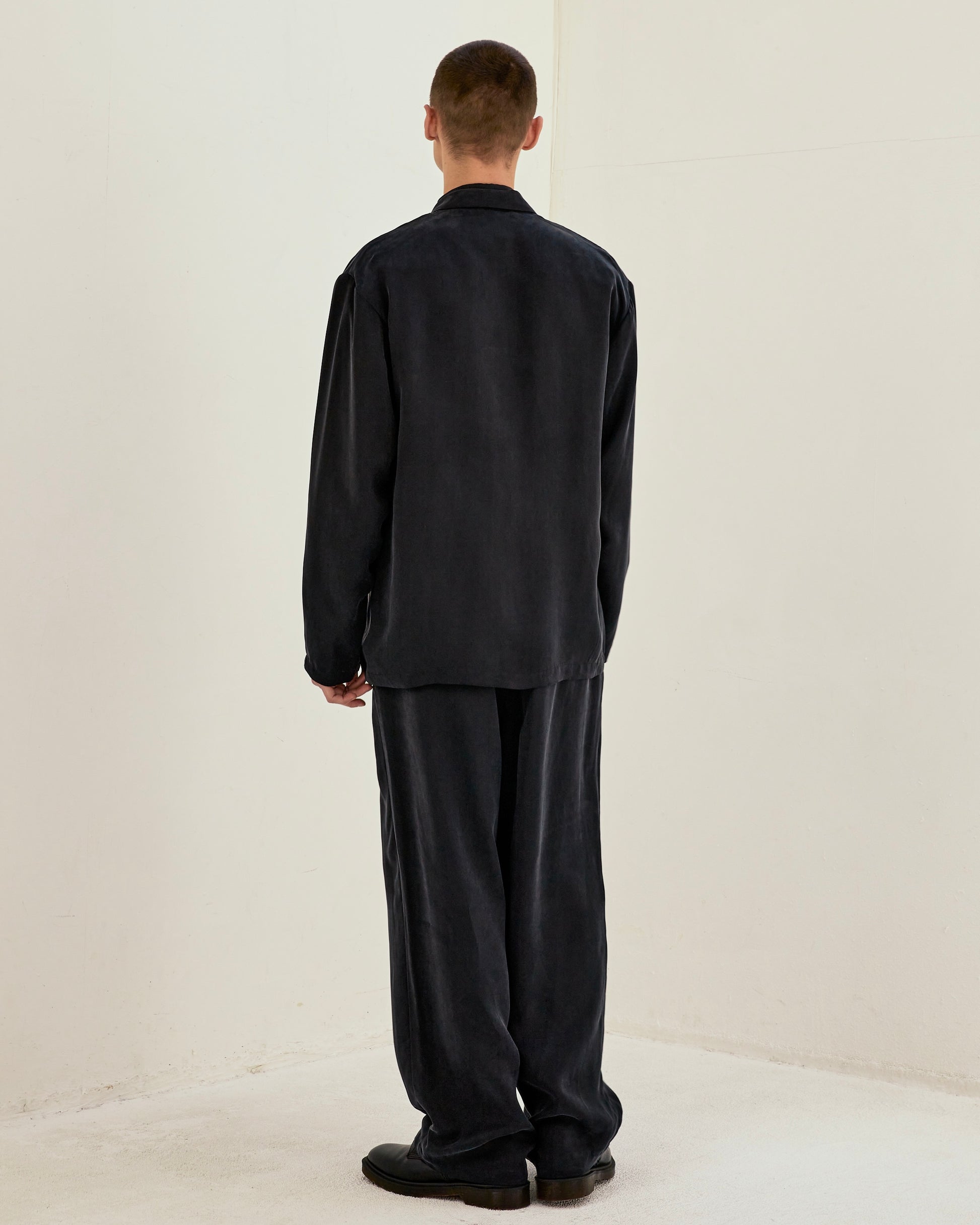 Wide elastic pant made from vintage-processed cupra fabric. Lightweight and draping for an elegant style. Cool to the touch and machine washable.