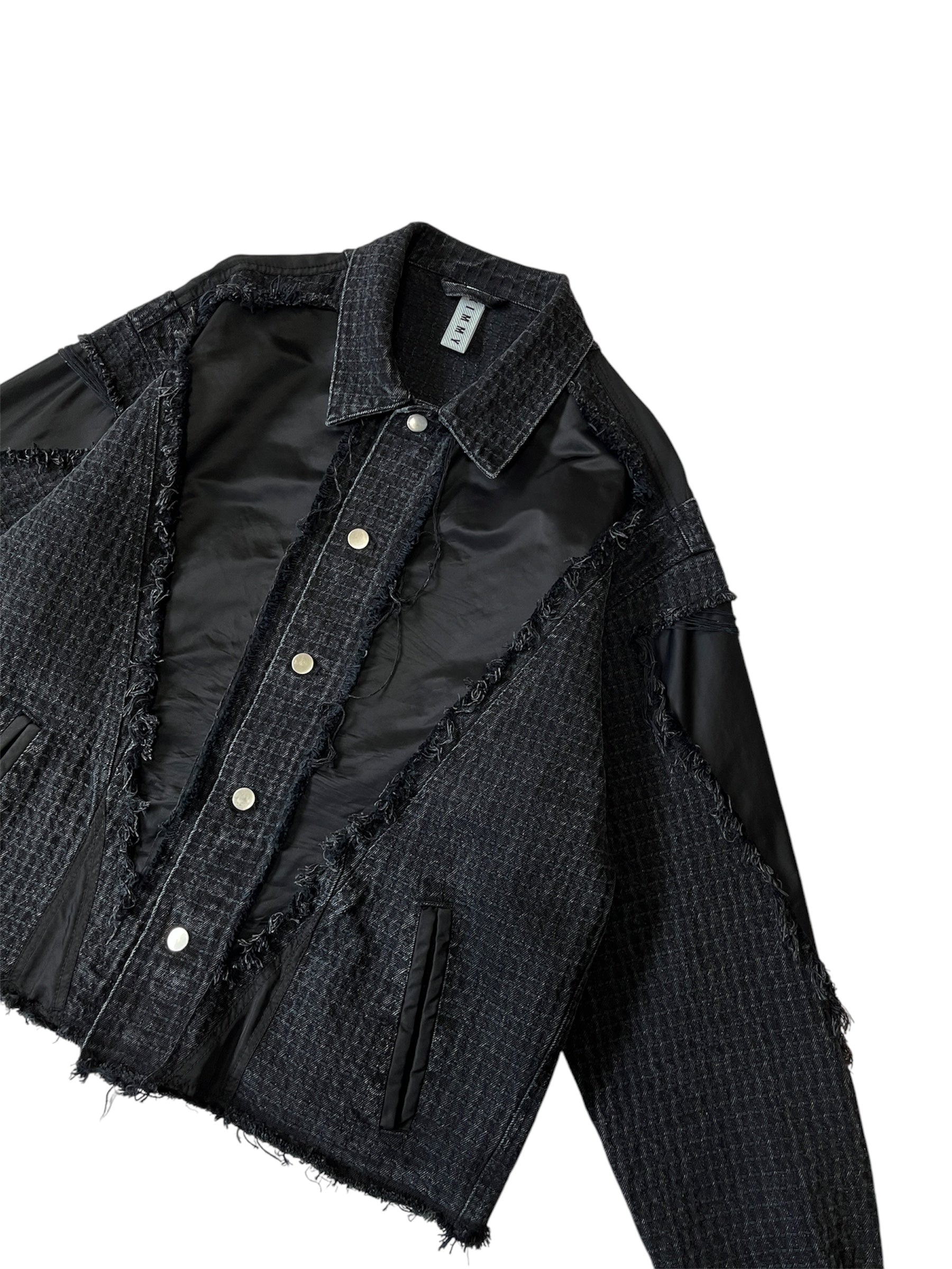 SASHIKO black denim jacket that combines traditional Japanese 15.5oz SASHIKO denim with high-performance heavy nylon.