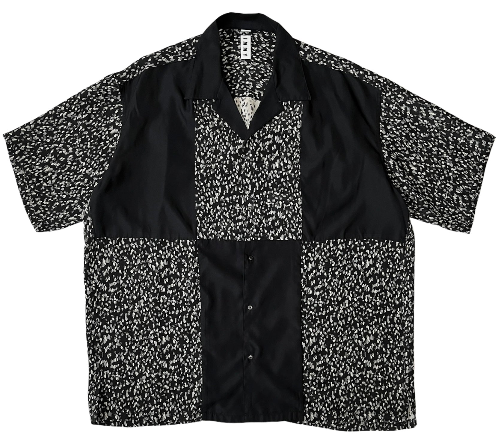Retro short sleeve shirt made of drapeable rayon material with a “Showa retro flower” motif. It is square panel patchwork design and It has pockets on both sides.