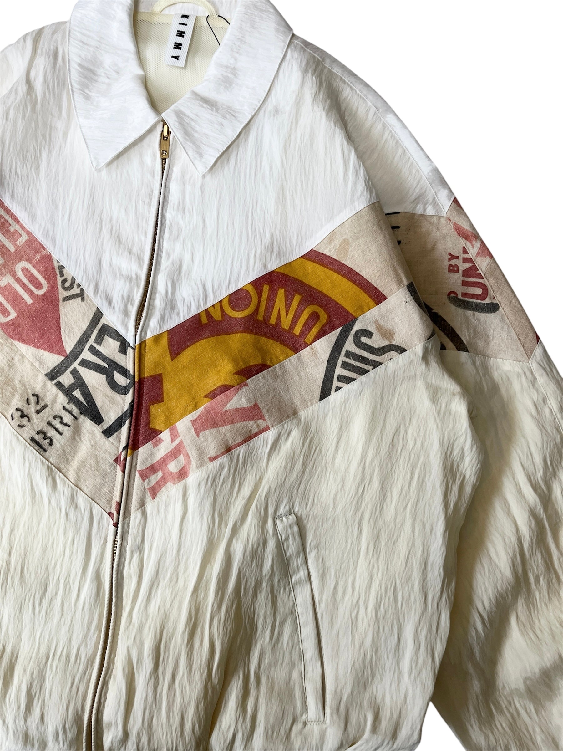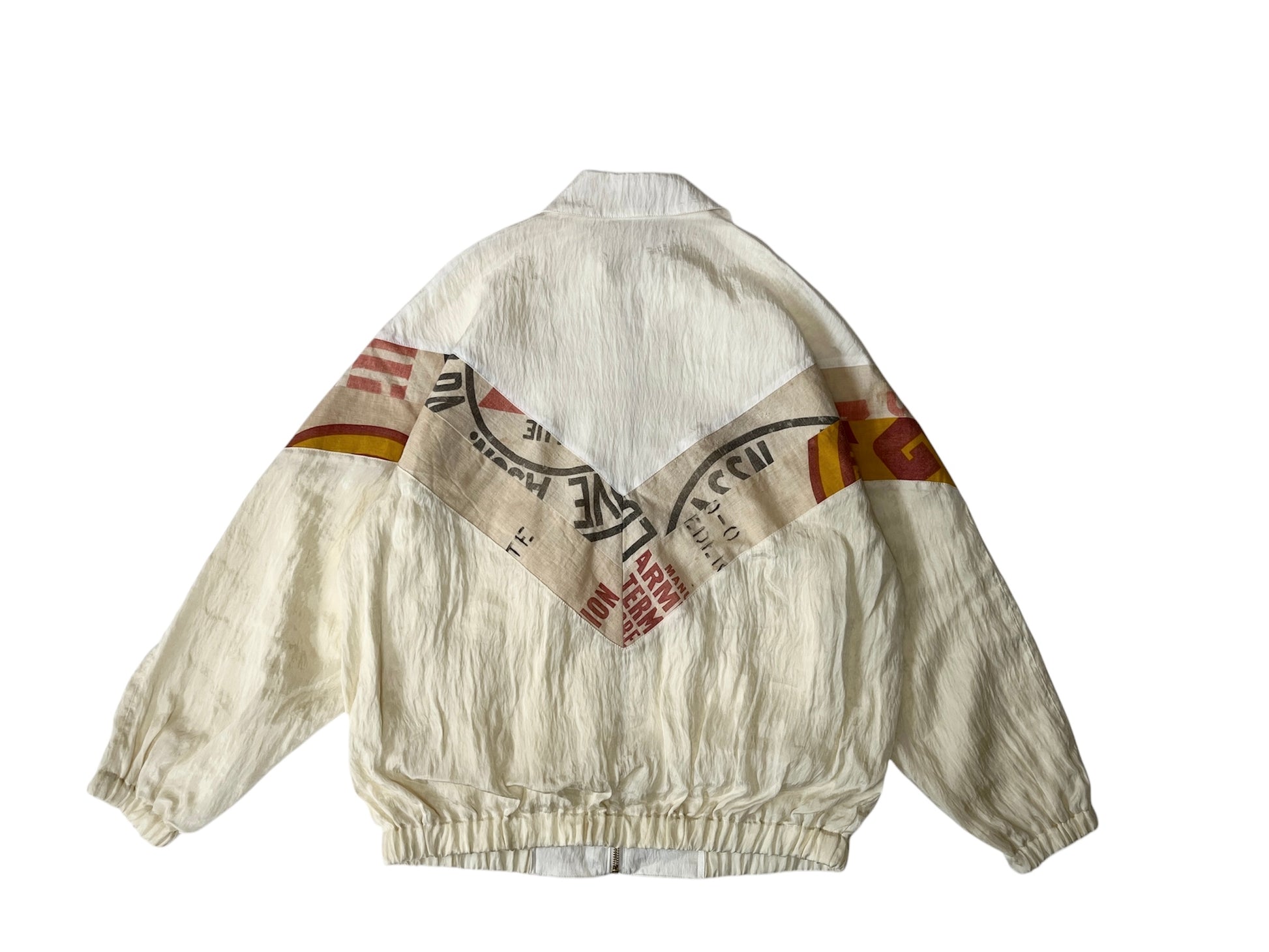 Vintage sport jacket that combines a 1940s feedsack with modern functional materials.